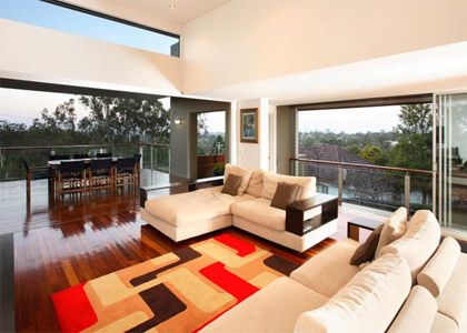 Phòng khách xu hướng hiện đại ưu tiên không gian sử dụng, nội thất và ngoại thất hòa lẫn vào nhau qua ô cửa lớn. Phòng khách thường liên thông với ăn và bếp, kèm theo một quầy bar mini. Khi thiết kế, cả chủ nhà và kiến trúc sư thiết kế thường tìm tòi cho phòng khách những vị trí, diện tích để có thể tạo được những “view” đẹp nhất trong ngôi nhà.