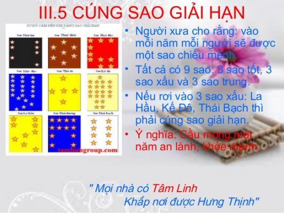 Theo đó 9 sao hóa giải theo ngũ hành, sao xấu thuộc hành nào thì tiết giảm, sao tốt hành nào thì chọn ngũ hành tương sinh. Cụ thể: