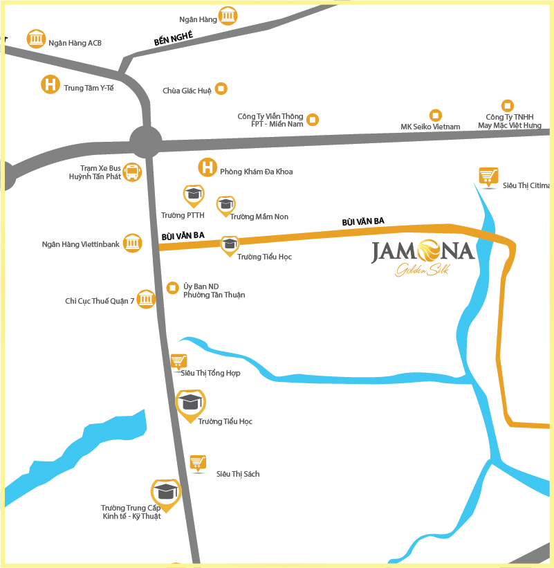 Tiện ích xung quanh dự án căn hộ Jamona Golden Apartment và dự án đất nền Jamona Golden Silk